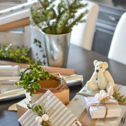 I used rustic elements like the sweet little owl, wooden bowl, pine cones and branch orb, combined with natural greenery and red ornaments and ribbon to give the room a festive holiday feel.