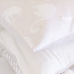 I found some adorable grey and white polka dot and elephant print fabric from my favourite fabric store, which was perfect for a few handmade pillows. It was a fun afternoon project for my mom and I! You can read how we made them here.