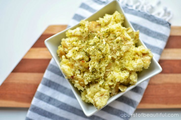 In our household, we have a lot of roasted potatoes seasoned with lemon, garlic and onion, so one night we decided it was time for a change. We like to barbecue our potatoes in the summer and typically cook them wrapped in a tinfoil pouch to let the steam do most of the work. We both love chunky mashed potatoes and so I looked in the refrigerator to see if we had ingredients on standby that I could use to quickly whip something up.
