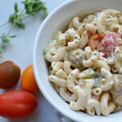 In an effort to eat healthy during the week when the days are busy and hectic, I like to make my favorite salad and pre-pack it in mason jars. It’s a convenient way to make eating healthy easy. Just grab one from the fridge, give it a shake and you’ve got lunch on the go.