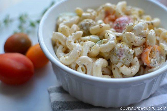 Today I’m popping in to share this creamy pasta salad Nick whipped up over the weekend. It’s so full of flavor and has the best creamy dressing. You have to give it a try!