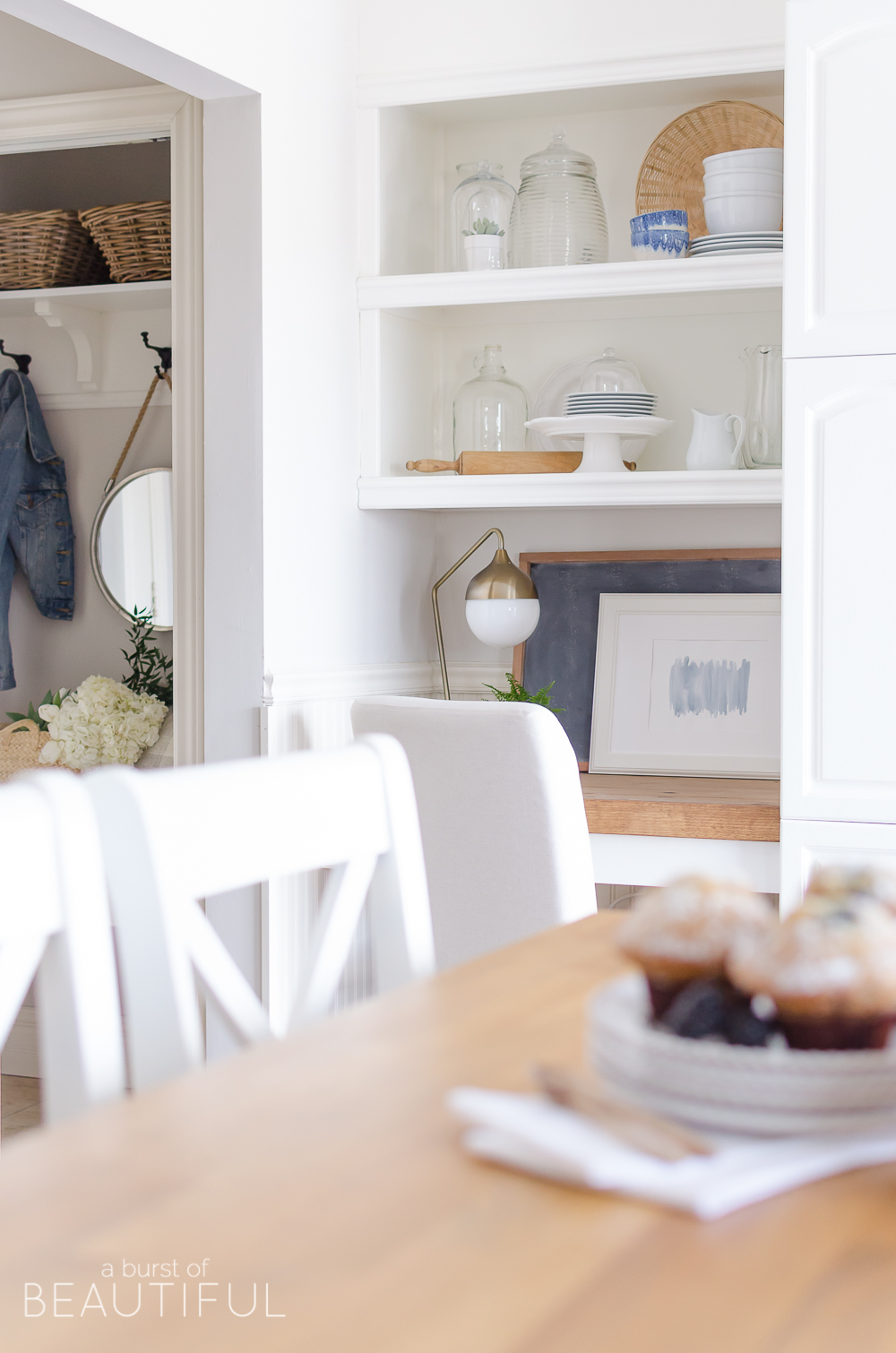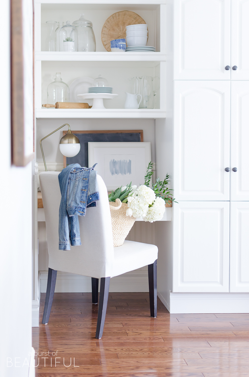 Beautiful spring touches, Alicia. I love how bright and light filled your home is! And that little desk area is amazing!!