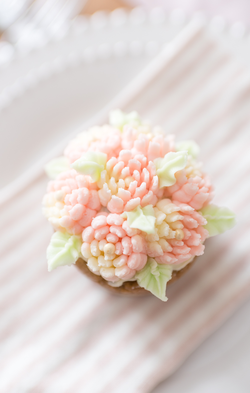 - We finished it off by adding a single pearl sprinkle to the center of each bloom.