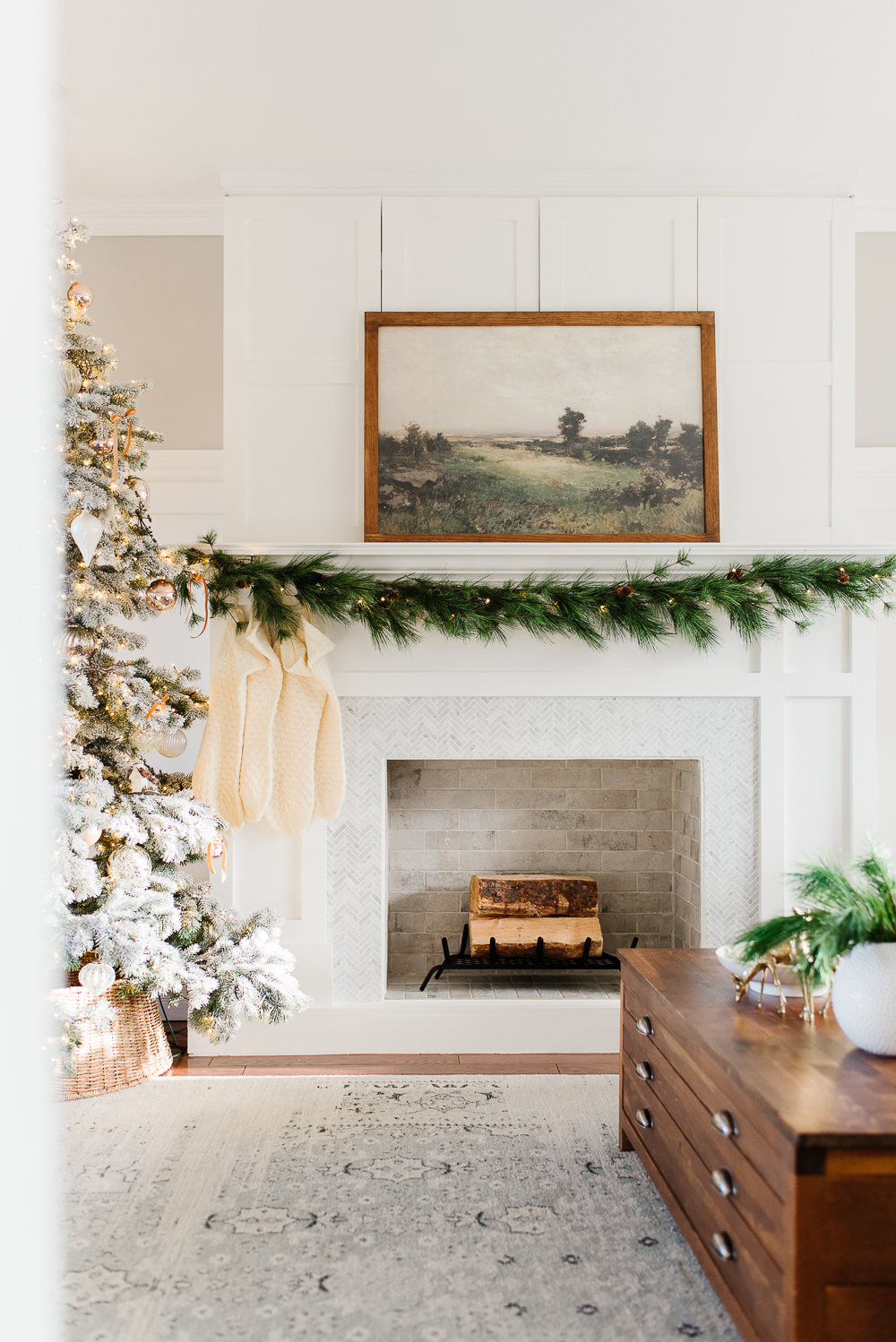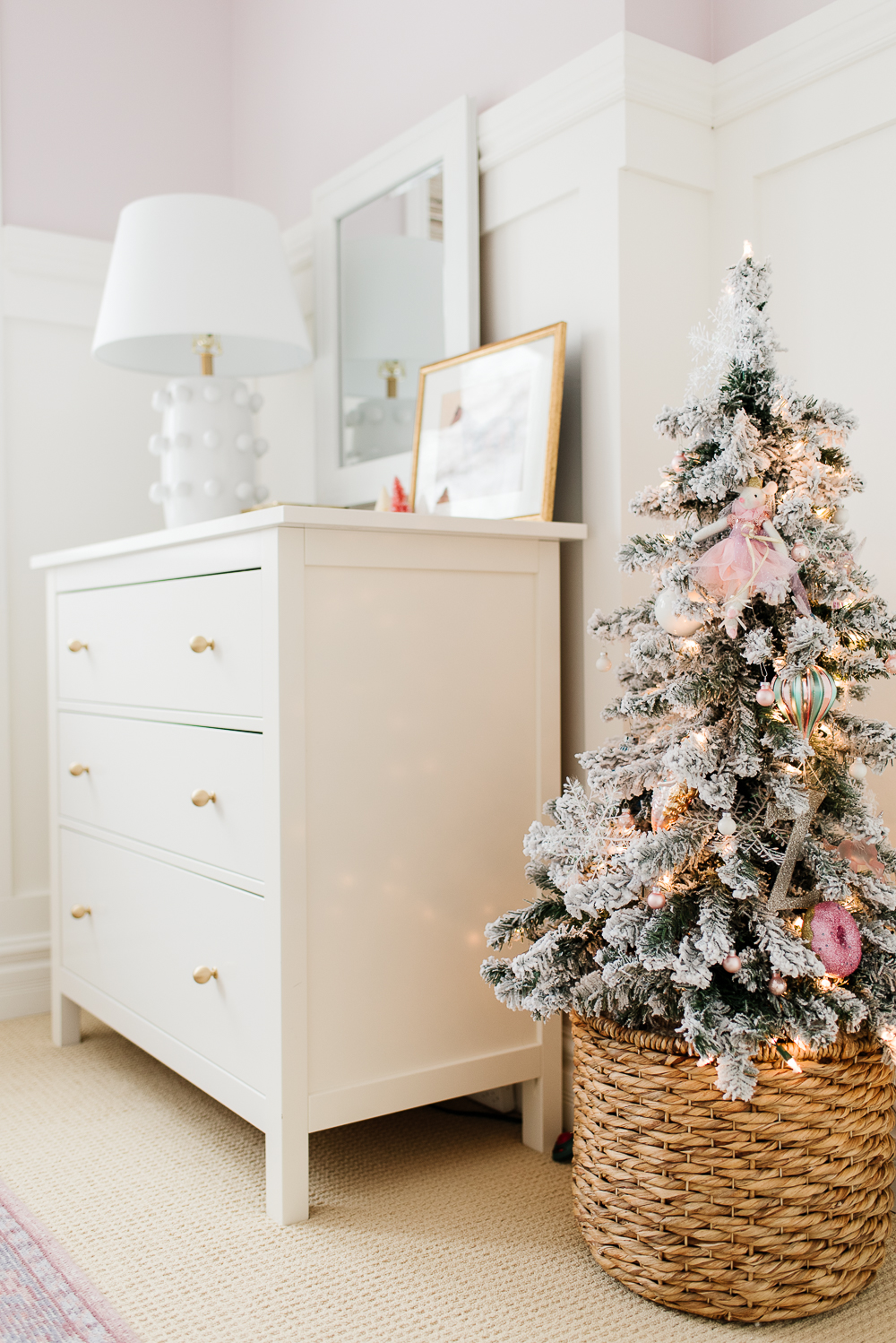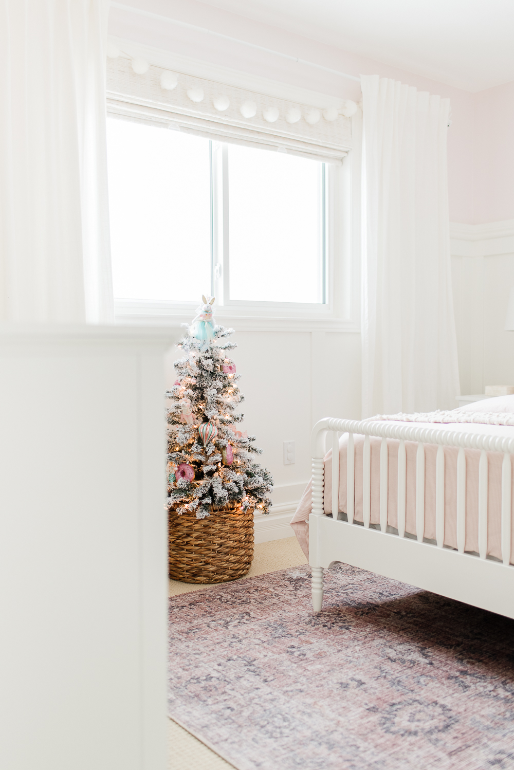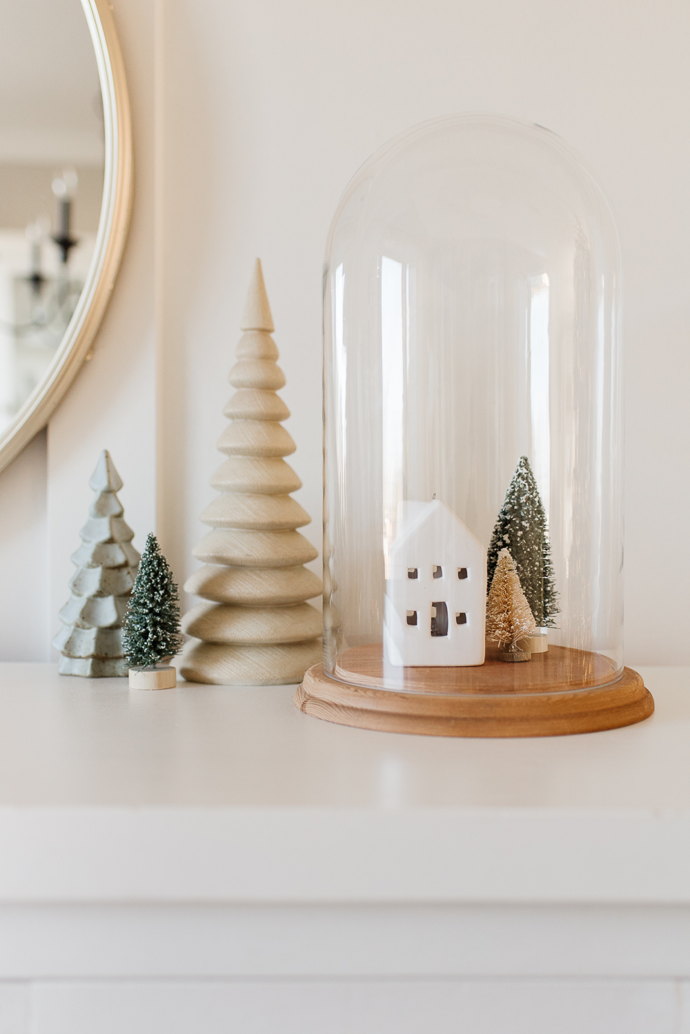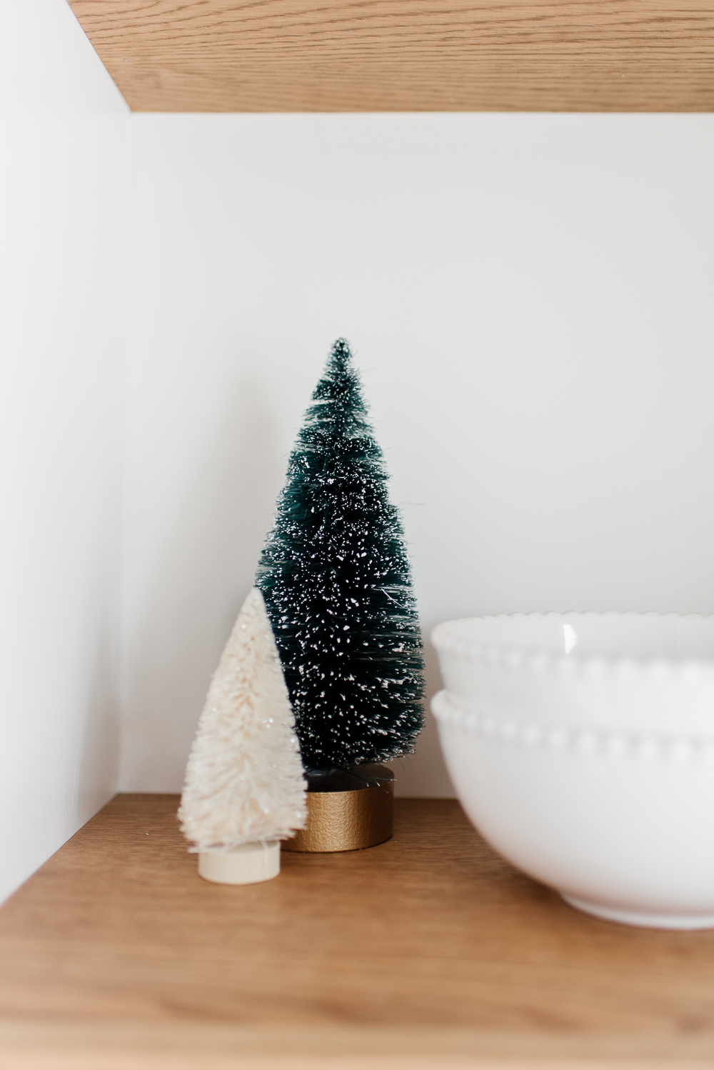 While I keep our holiday decor fairly simple, I do try to add a little bit of Christmas to every room in our home. I find it’s these little details that really make our house feel festive and invite the anticipation of the holiday. Whether it’s our girls’ own miniature trees in their bedrooms, a simple pine garland over our kitchen window, or our collection of bottle brush trees scattered throughout the house, I make sure no space is overlooked. Even the playhouse is decorated each year!