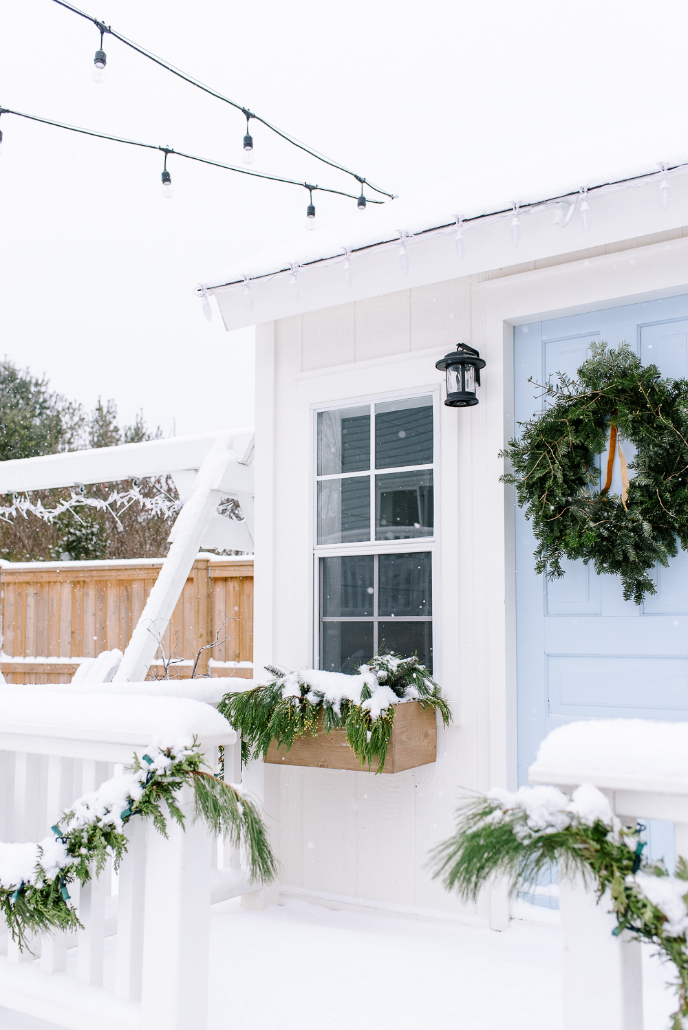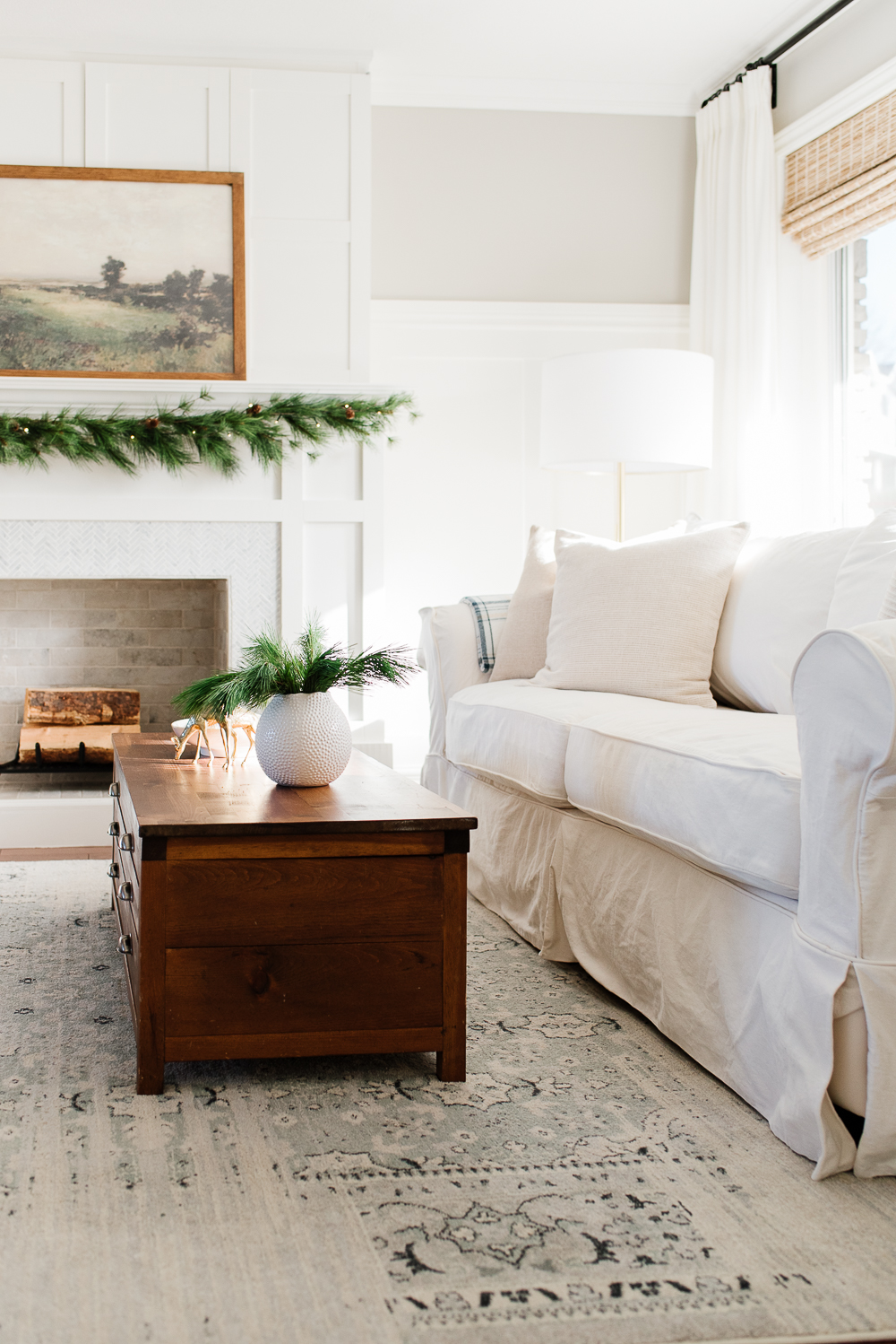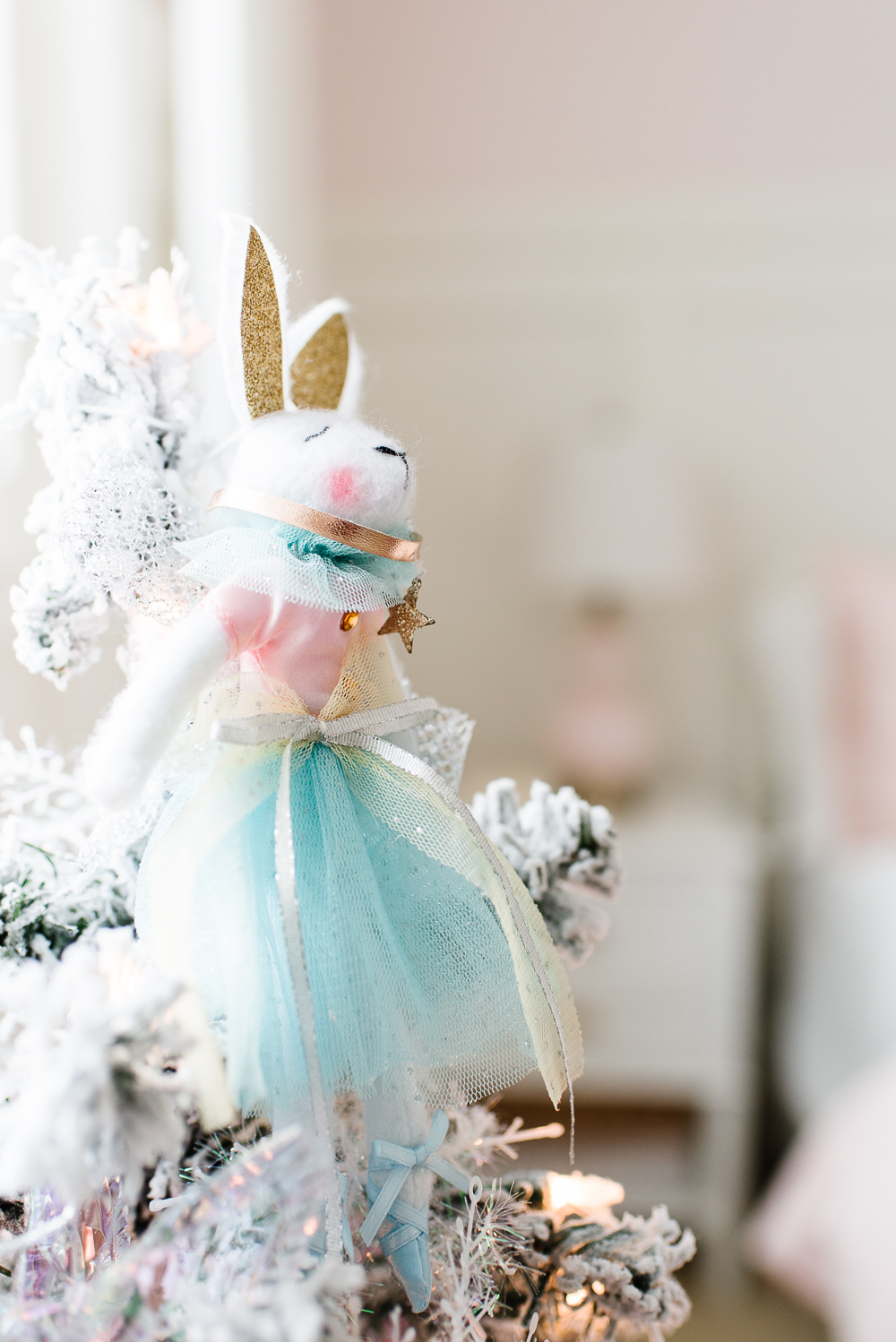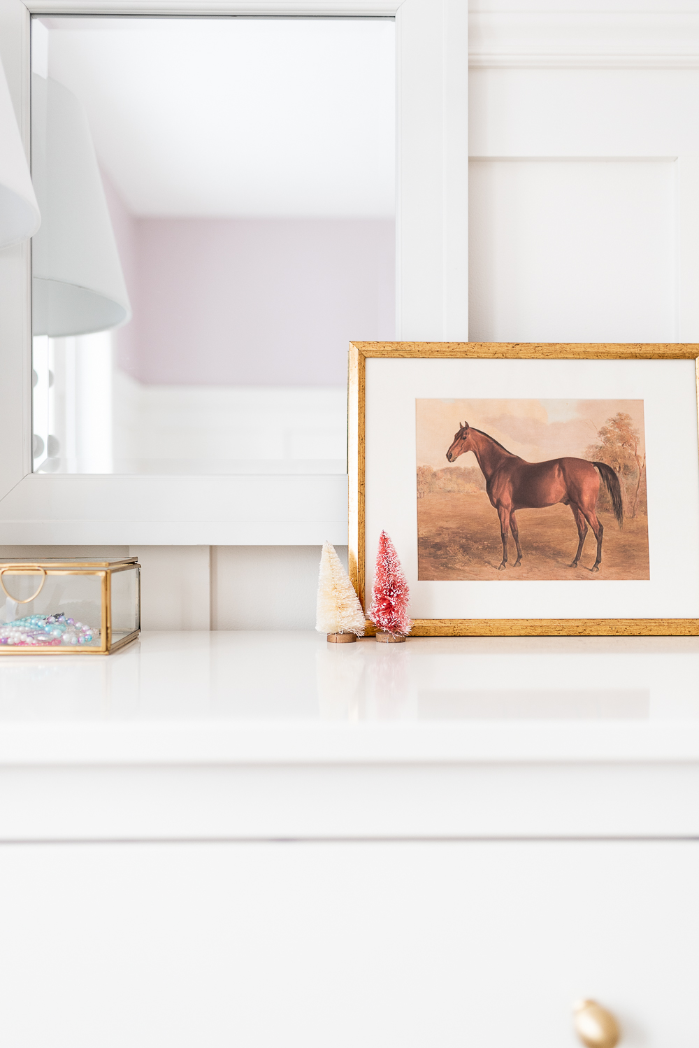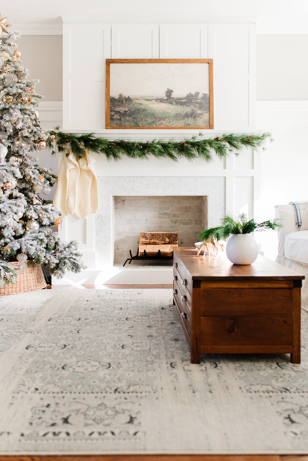 While I keep our holiday decor fairly simple, I do try to add a little bit of Christmas to every room in our home. I find it’s these little details that really make our house feel festive and invite the anticipation of the holiday. Whether it’s our girls’ own miniature trees in their bedrooms, a simple pine garland over our kitchen window, or our collection of bottle brush trees scattered throughout the house, I make sure no space is overlooked. Even the playhouse is decorated each year!