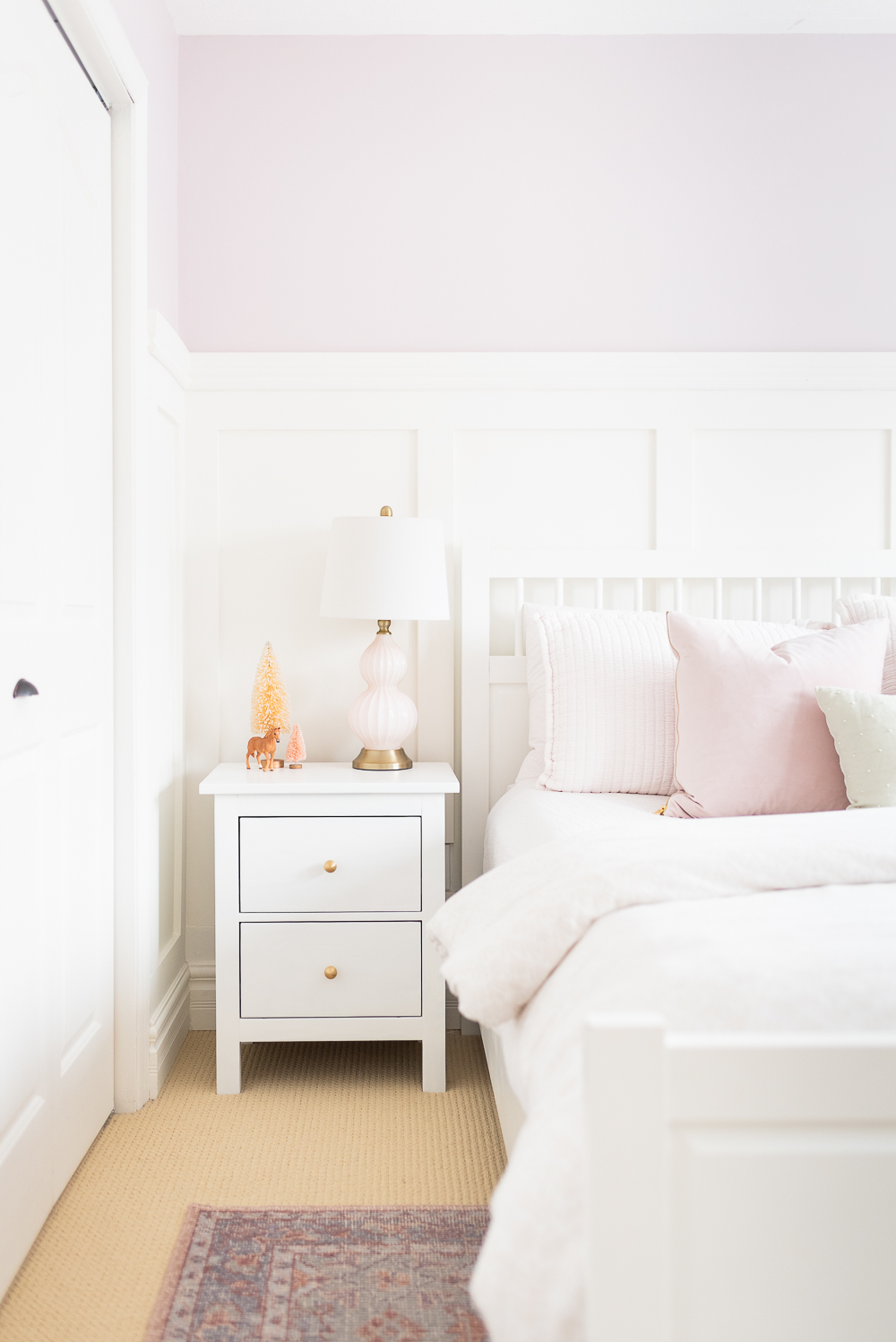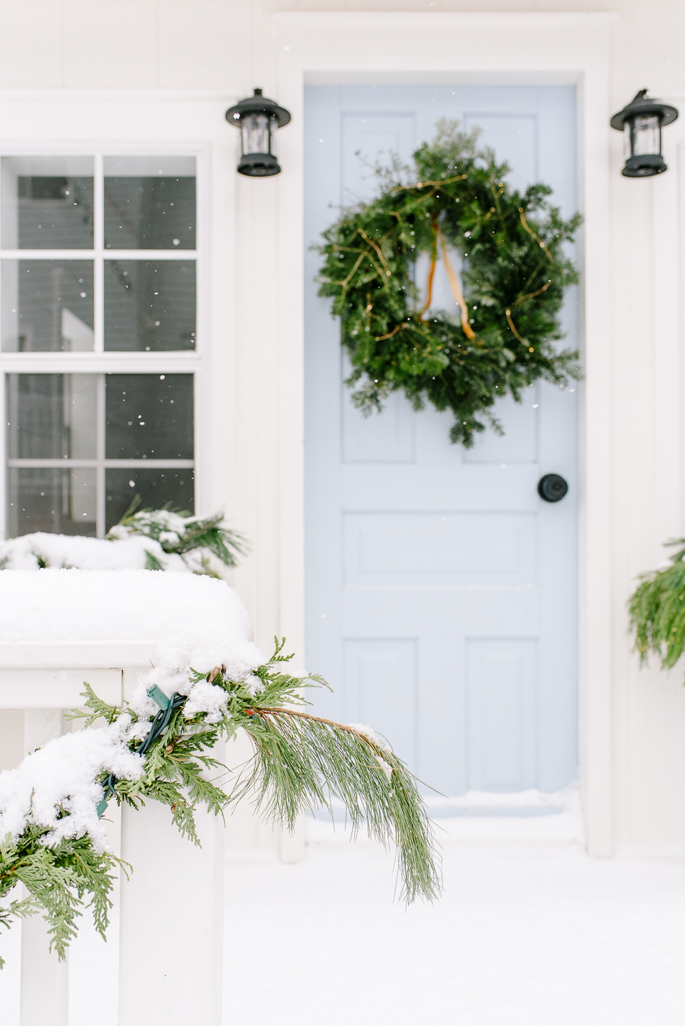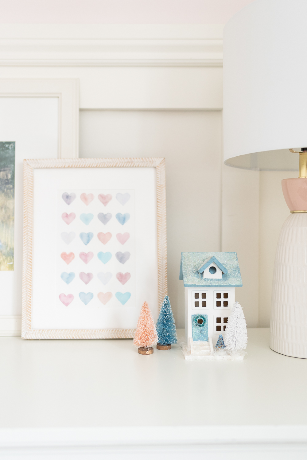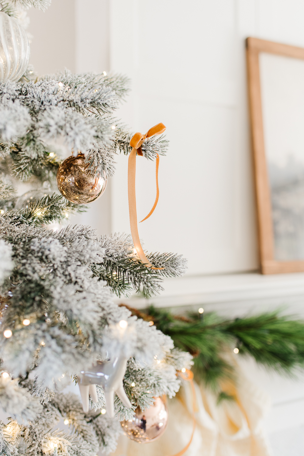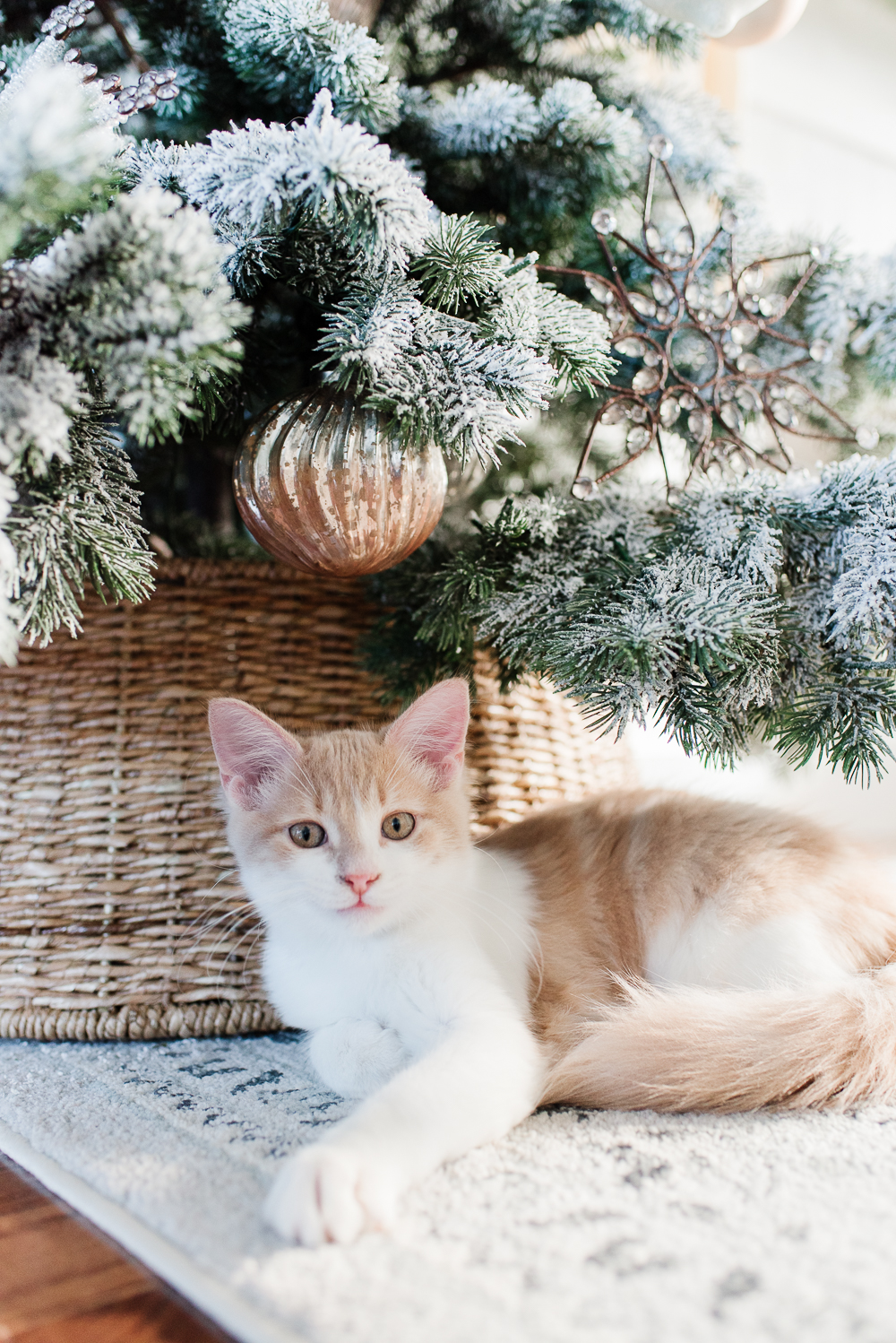 While I keep our holiday decor fairly simple, I do try to add a little bit of Christmas to every room in our home. I find it’s these little details that really make our house feel festive and invite the anticipation of the holiday. Whether it’s our girls’ own miniature trees in their bedrooms, a simple pine garland over our kitchen window, or our collection of bottle brush trees scattered throughout the house, I make sure no space is overlooked. Even the playhouse is decorated each year!