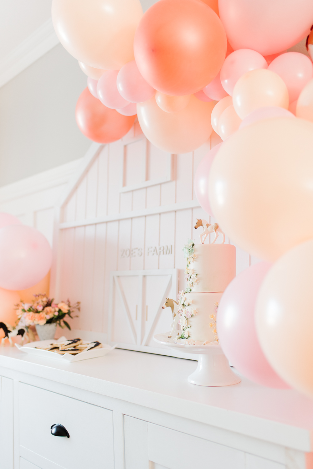 I choose the Kalisan Pastel Matte Macaroon in pink and salmon (5″, 12″ and 24″), Qualatex Metallic in rose gold, and two foil horses in brown and tan, which were a huge hit!