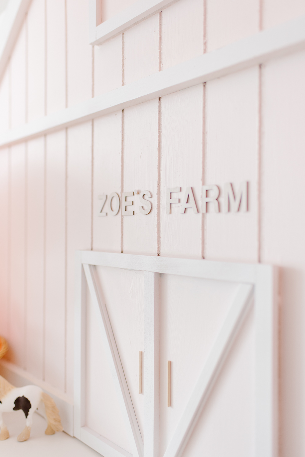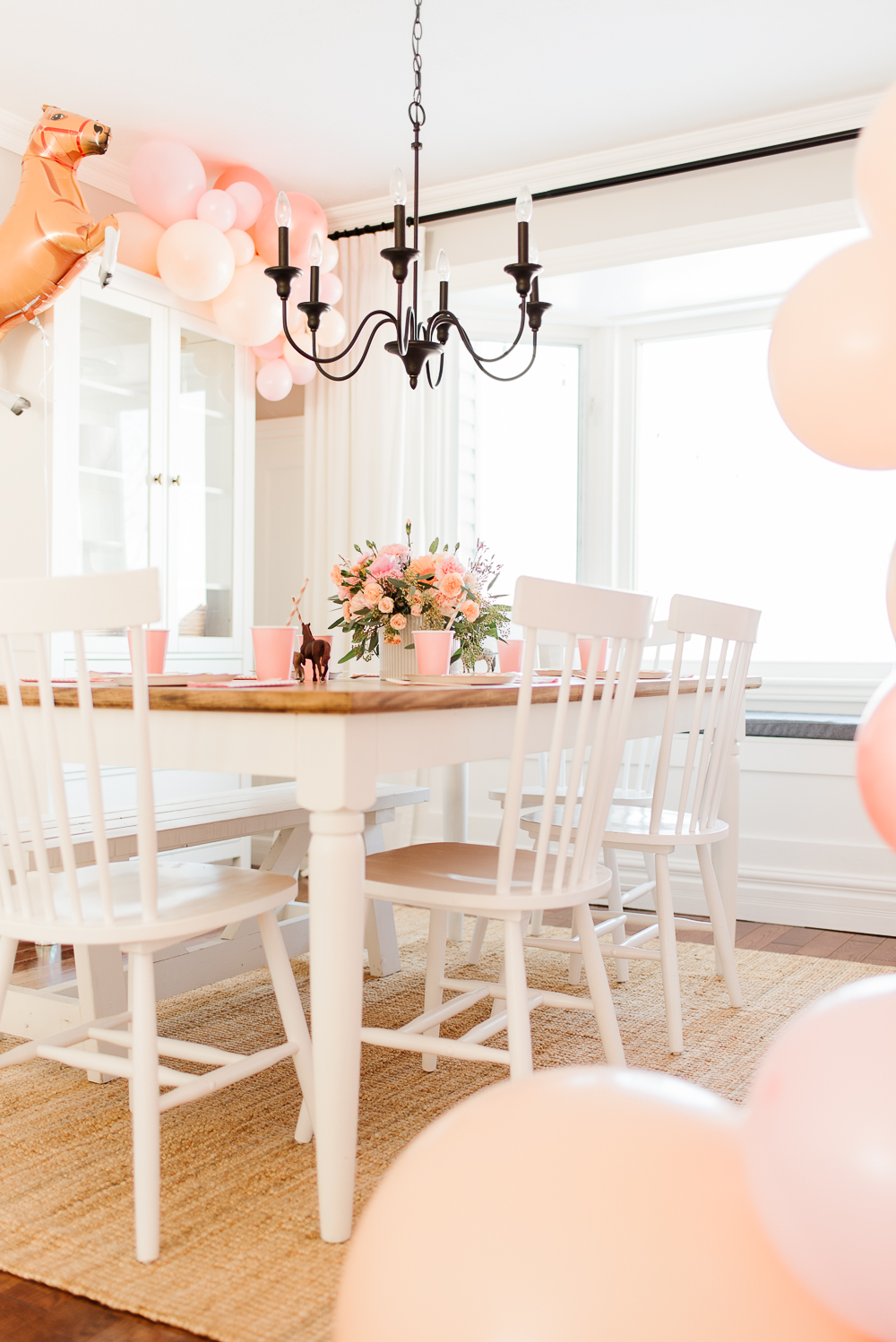 The pink and white barn with Zoe’s name was such a fun and personal element to add to her party. Nick built it using leftover wood from his shop and paint we had from past projects. We propped it on the sideboard and it was the perfect backdrop for all of the other party decor.