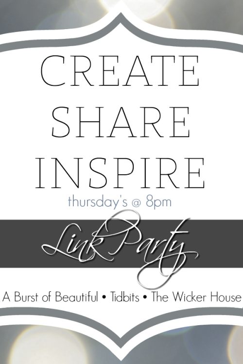 Hello and welcome to the first Create • Share • Inspire Link Party! We are so happy you joined us today! Last week I shared a little bit about our link party and I introduced my co-hosts – Cami from Tidbits and Emily from The Wicker House, in case you missed it I’ll share…