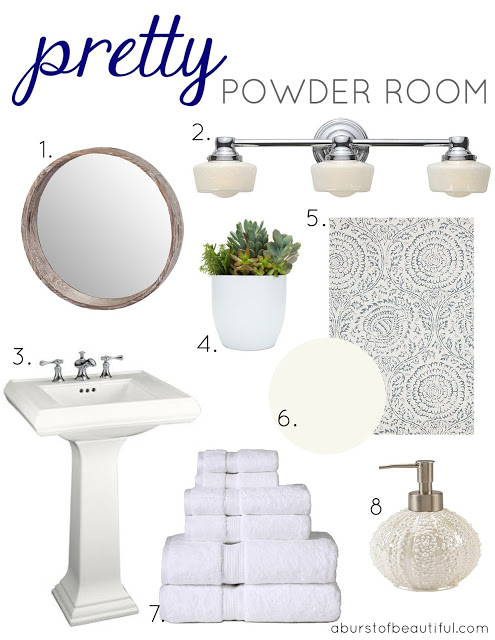 There is nothing I love more than sharing my creativity. This is why we started A Burst of Beautiful, to share our creativity and hopefully inspire others. So when dear friends of ours asked for design help with their home we jumped at the chance. 1. Mirror 2. Light 3. Sink 4. Succulents 5. Wallpaper…